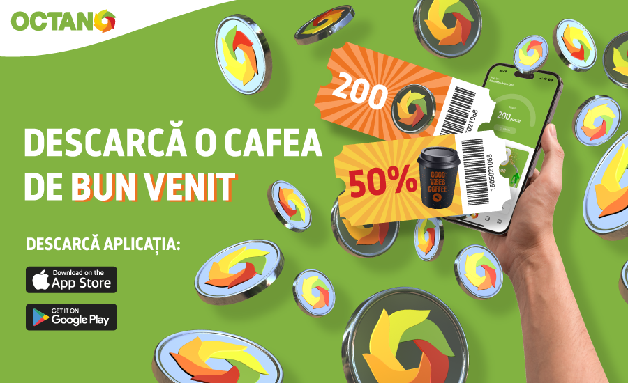 Instalează aplicația OCTANO, creează-ți contul sau înrolează cardul tău de puncte existent și primești instant 200 de puncte + un voucher de reducere la cafea – combinația perfectă pentru o cafea din partea noastră.